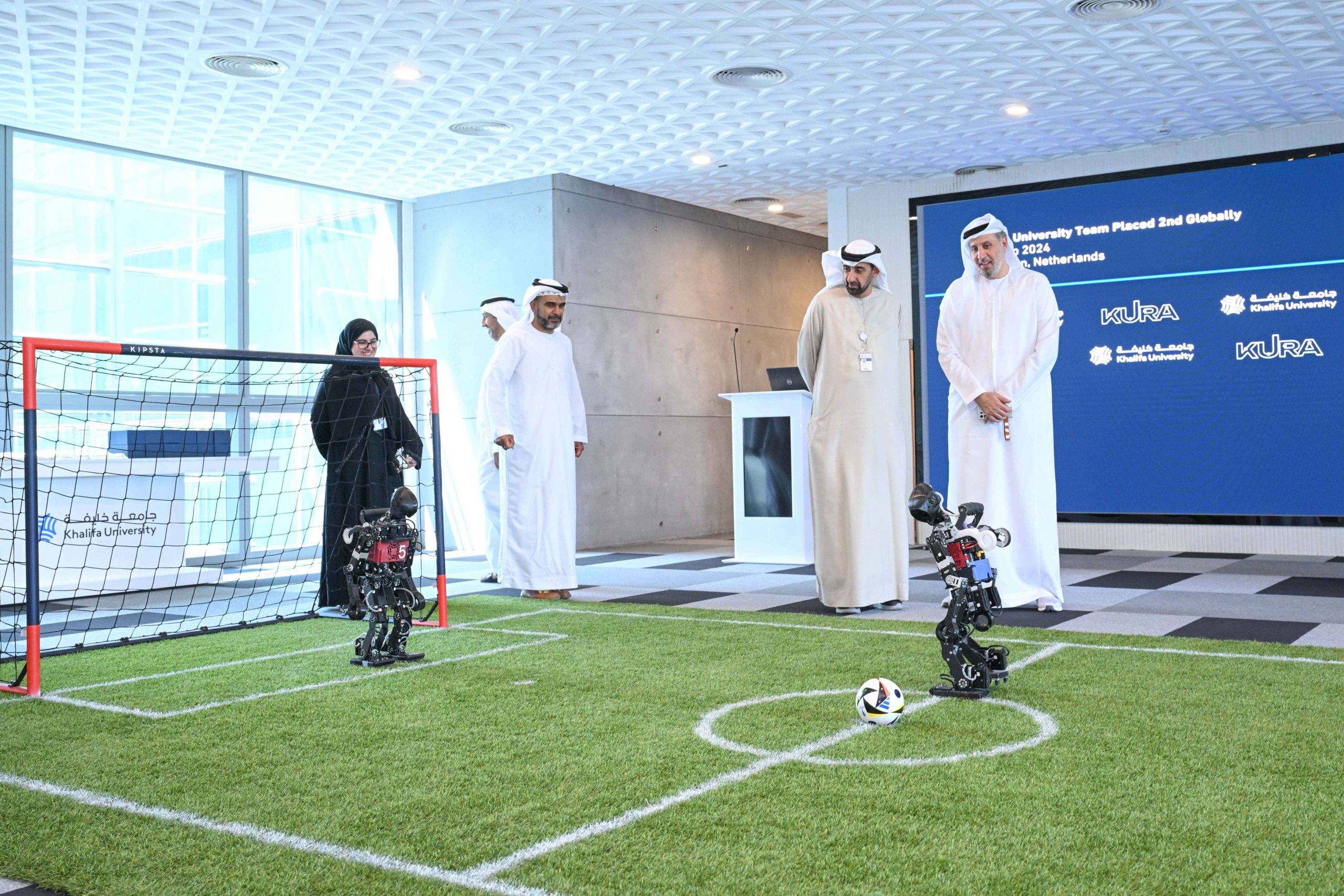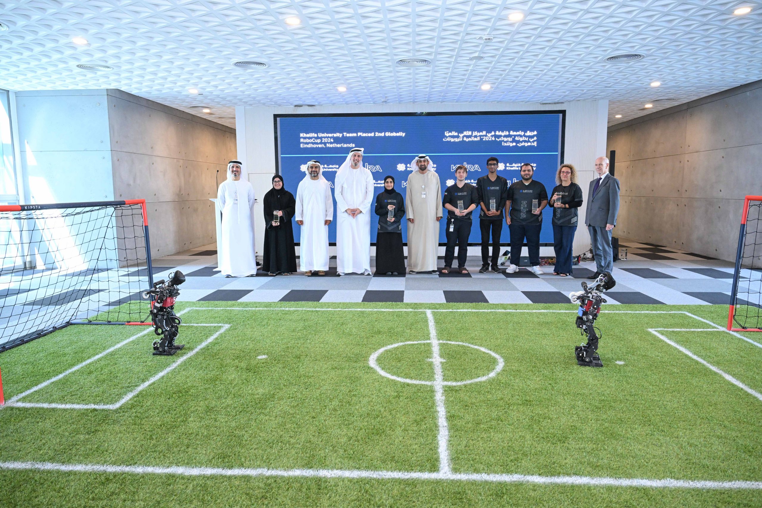 أعلنت جامعة خليفة للعلوم والتكنولوجيا، اليوم، عن فوز فريق الجامعة المكون من 14 طالب وأكاديمي بالمركز الثاني في بطولة الروبوتات صغيرة الحجم في كأس (روبو-كب 2024) العالمي لكرة قدم الروبوتات والتي أقيمت مؤخرًا في مدينة آيندهوفن بهولندا.