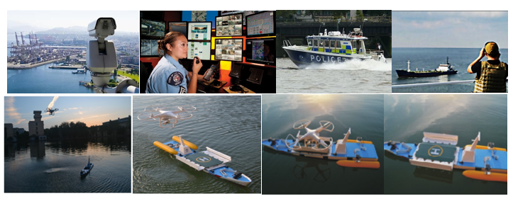 This project aims to enhance port security through an autonomous inspection and surveillance system consisting of a USV (Unmanned Surface Vehicle) and multiple UAVs (Unmanned Aerial Vehicles). The USV focuses on water surface surveillance, while UAVs monitor airspace around the USV. In detecting unusual activities, the system alerts a base station. Key hardware includes sensory-equipped USVs and UAVs with cameras, laser range finders, and grippers. Software advancements involve deep learning for activity identification, path planning, collision avoidance, and autonomous landing/grasping techniques. The design utilizes dynamic simulators like Gazebo and the Robot Operation System (ROS), with later real-world hardware integration.