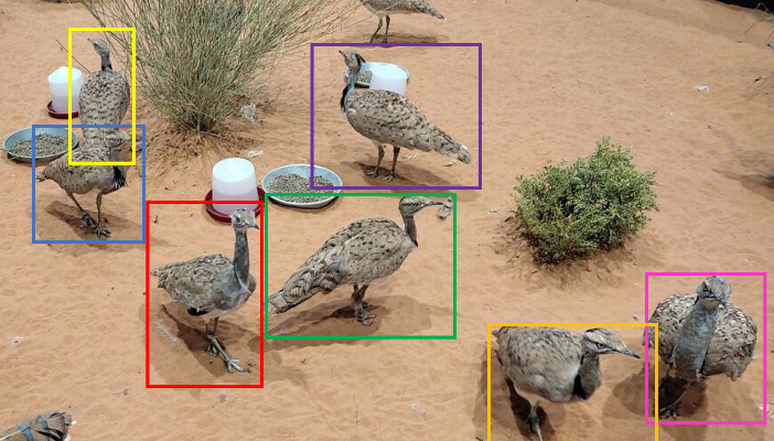 As part of the population monitoring in the wild, or bird assessment in captivity, multiple sensors are used by IFHC scientists, producing important amount of sensory data, such as picture and videos. Processing and analyzing such data with human operators are extremely time-consuming tasks slowing down IFHC research goals. This project propose to investigate AI-enabled computational models to analyze and understand a multitude of sensory data collected in captivity and into the natural houbara habitat and come out with relevant interpretative tasks that include bird pose, bird behavior, vegetation cover, trap picture analysis and many more.