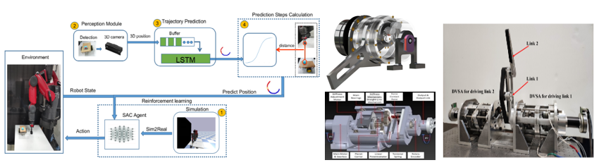 The complexity of robotic grasping merges design, actuation, sensing, and control. My innovations have resulted in robust and intuitive robotic hands, drawing inspiration from human hand synergies. Using mathematical models and advanced materials, as shown in Fig, we’ve achieved significant advancements. I’ve notably contributed to grasping algorithms and neuromorphic event-based tactile sensing. Our team is also focusing on complex environment grasping algorithms. My goal is to leverage this technology across sectors, especially in handling delicate and irregular items in fields like agriculture and medicine.