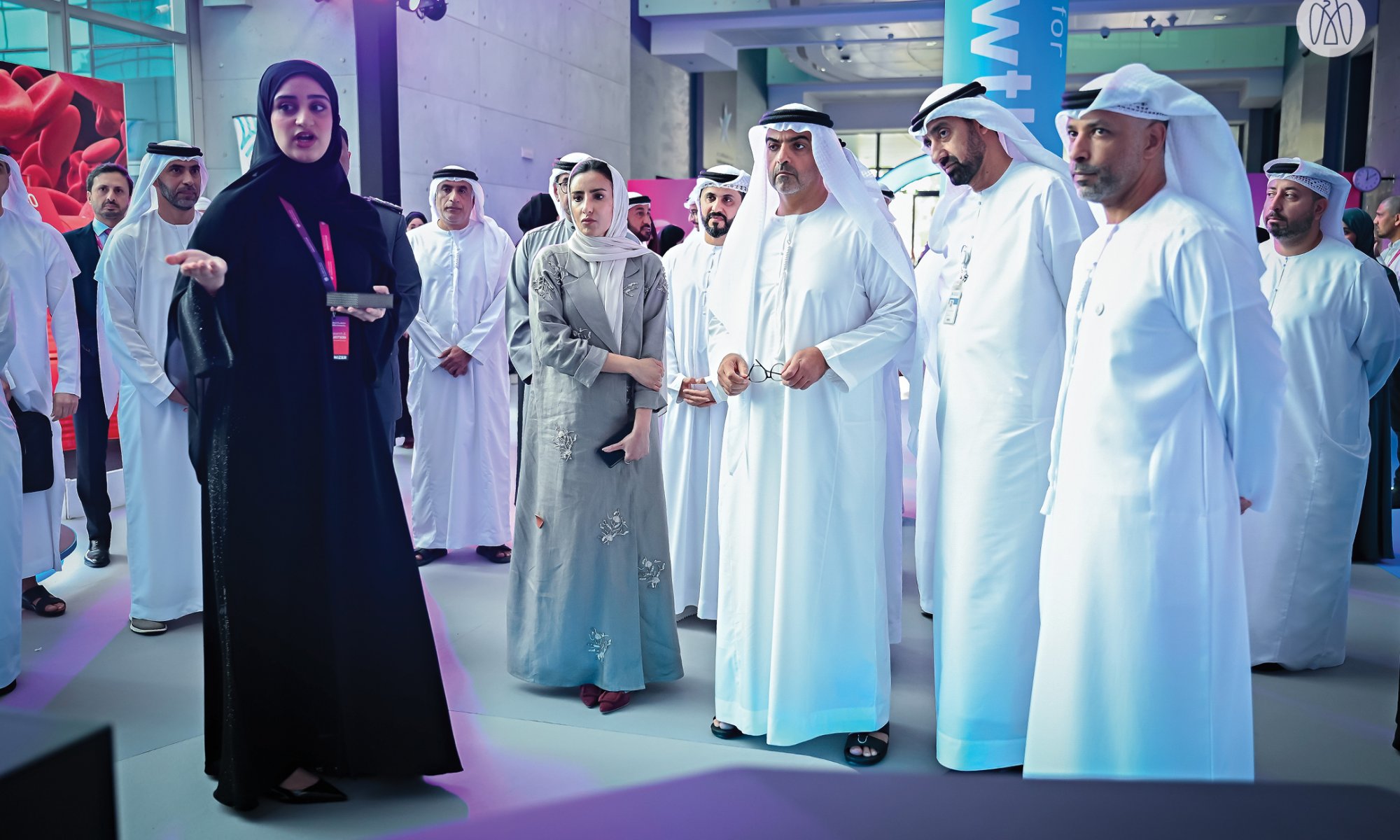 His Highness Sheikh Hamed was accompanied by H.E. Major General Faris Khalaf Al Mazrouei, Chairman of Abu Dhabi Heritage Authority, H.E. Sara Awadh Eisa Musallam, Member of the Executive Council, Chairperson of Abu Dhabi Department of Education and Knowledge, Hassan Ahmed Al Hosani, CEO, Bayanat, H.E. Mohammed Al Kuwaiti, Head of Cyber Security for the UAE Government, Major General Thani Butti Al Shamsi, Director of Saif Bin Zayed Academy for Police and Security Sciences, H.E. Homaid Al Shimmari, Vice-Chairman of the Board of Trustees of Khalifa University, and H.E. Prof. Ebrahim Al Hajri, President, Khalifa University.