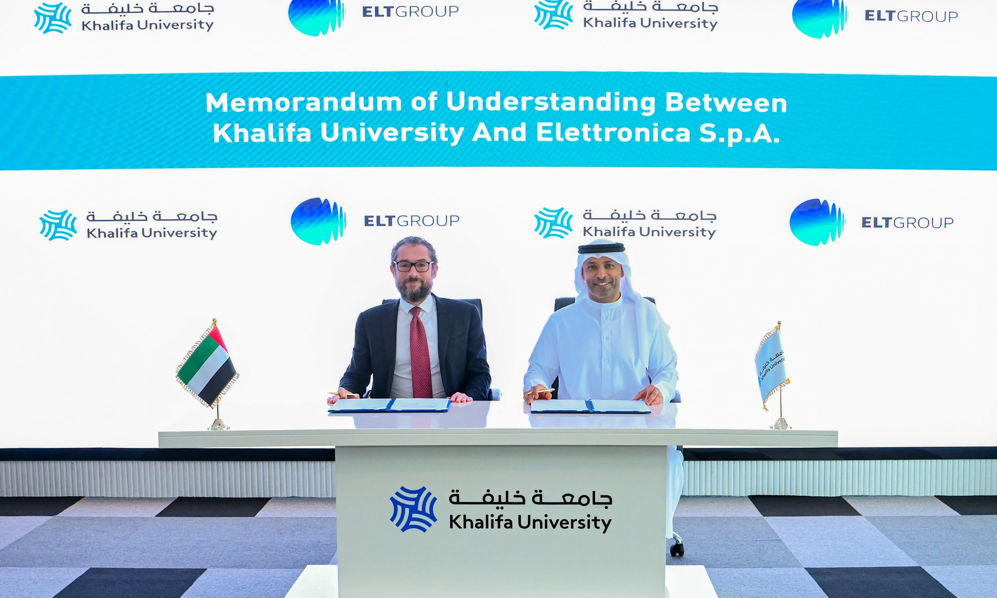 The MoU was signed by Dr. Ebrahim Al Hajri, Senior Vice‐President, Support Services, Khalifa University, and Paolo Izzo, Senior Vice‐President, Chief Sales Officer, ELT Group.